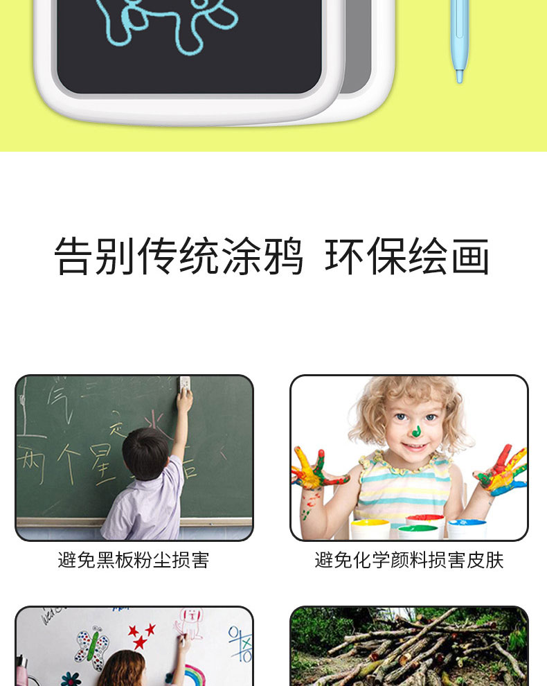 泥娃娃儿童绘画板便携手写板光能电子小黑板儿童绘画涂鸦画板带液晶显示提示
